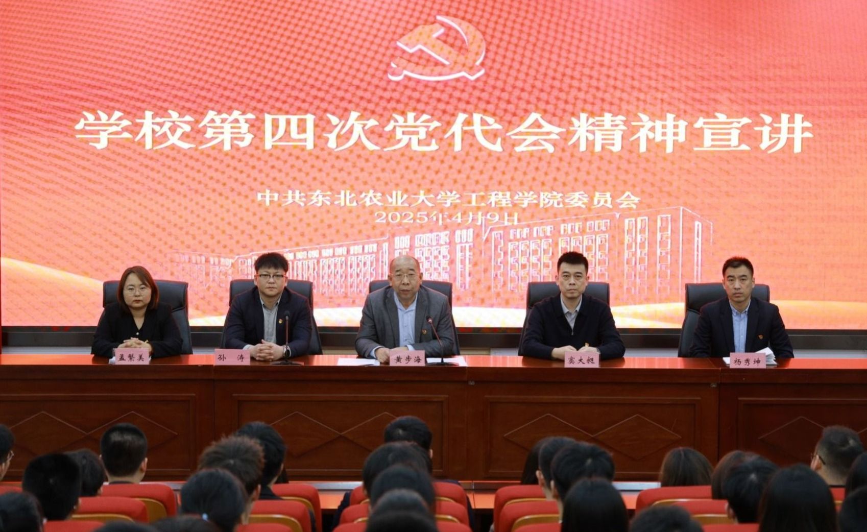 为全面贯彻落实学校第四次党代会决策部署,进一步凝聚思想共识、汇聚奋进力量,49日,Beat365中文官方网站组织召开专题学习会议,系统传达并深入研讨学校第四次党代会精神。学院党委书记黄步海作专题传达,全体辅导员、学生党员共计200余人参会,会议由学院党委副书记孙涛主持。