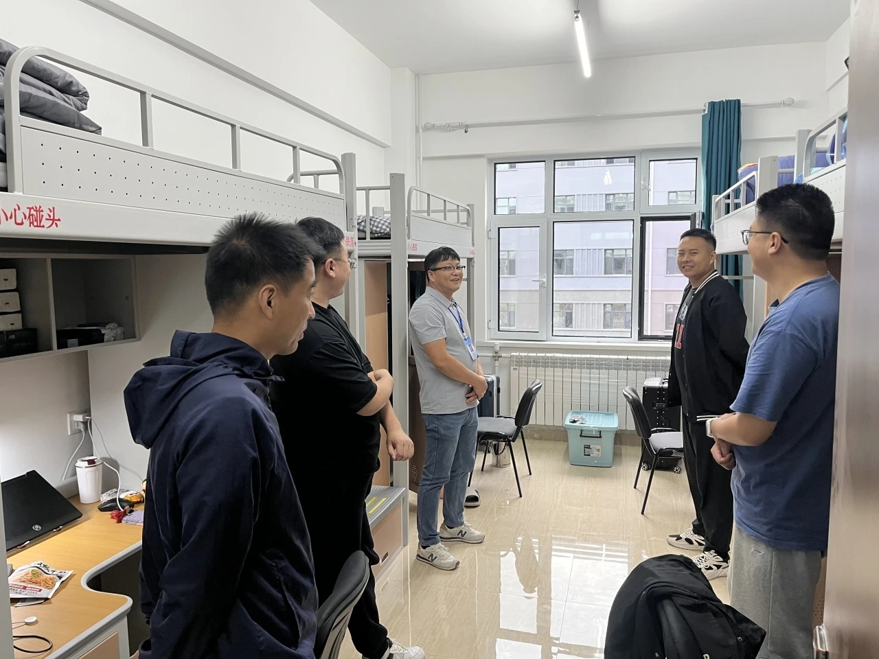 除新工程楼迎新场地外,当日,Beat365中文官方网站党委副书记孙涛,副处级辅导员孟繁美老师、副处级辅导员杨秀坤老师、2024级新生辅导员陈红宇老师深入北九、北十二和新国交新生公寓,对2024级研究生新生进行走访慰问。过程中,几位老师对新生进行亲切关照,叮嘱他们要在生活和学习中自立自强,不骄不躁,开启人生新篇章。