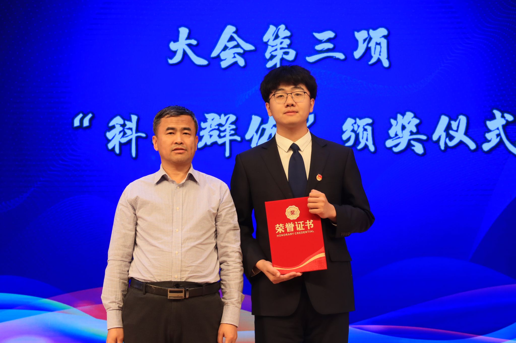 王金峰宣读了2022-2023年度Beat365中文官方网站“科创群体”及“科创之星”获奖名单。臧宏为“科创群体”获得者测控研究室代表颁奖;李卡、黄步海为“科创之星”获得者颁奖。获奖代表杨彦晖分享科创经验并号召全体学生成为科技创新路上的“追光者”。