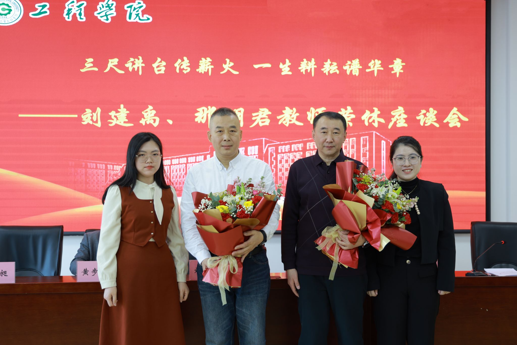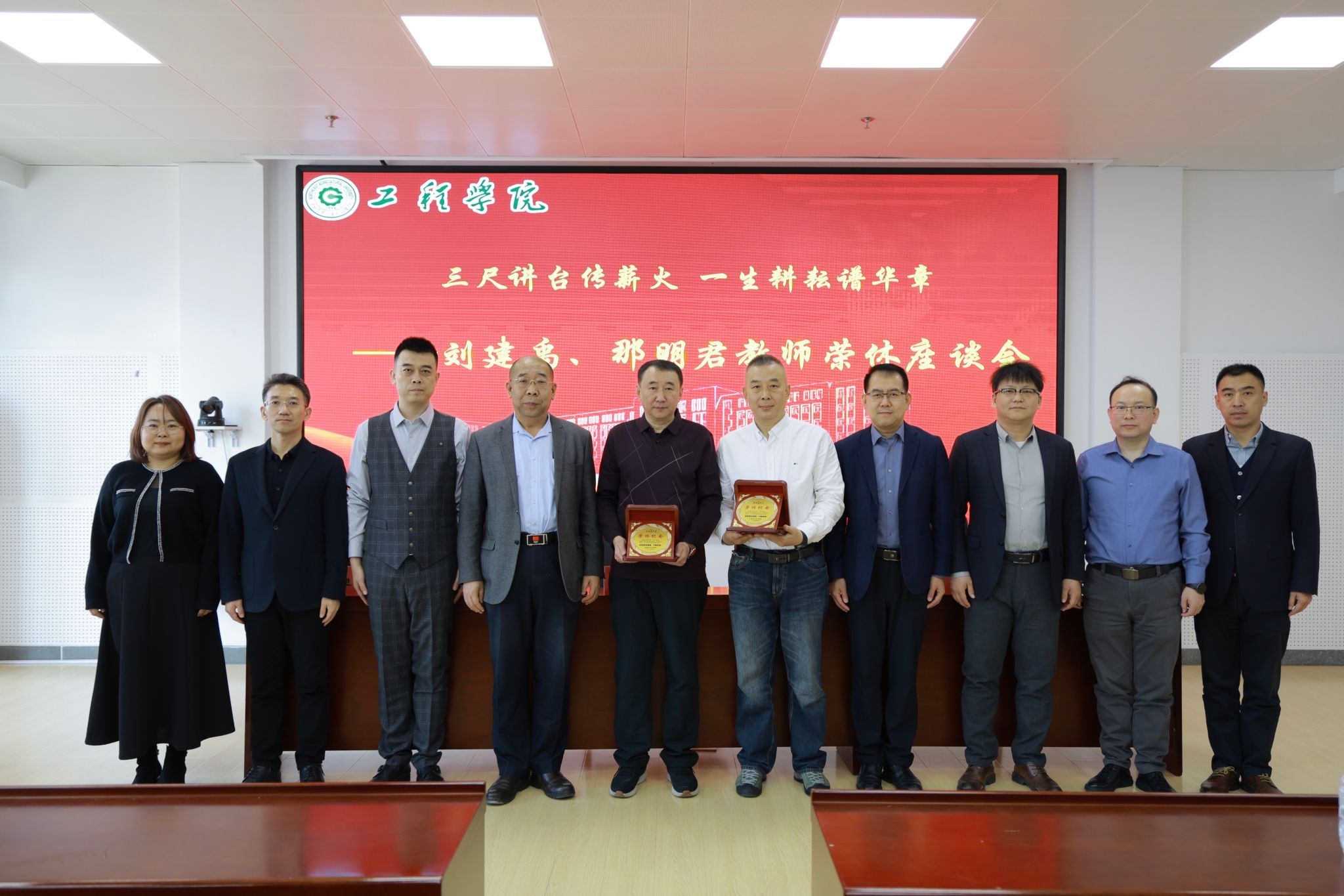 继往开来,凝聚奋进力量学院党委书记黄步海在总结中高度评价两位教师的育人业绩。他强调,刘建禹、那明君两位教师数十载如一日,始终以教育事业为己任,是学院发展的见证者、建设者和奉献者,在人才培养、科学研究等领域作出突出贡献,为全院教职工树立了学习典范。他号召全体教职工秉持校兴我荣的信念,立足岗位、爱岗敬业,以爱校如家 当好主人翁的责任感与学校同舟共济,在推动高质量发展中实现个人价值,共同谱写学校事业发展新篇章。