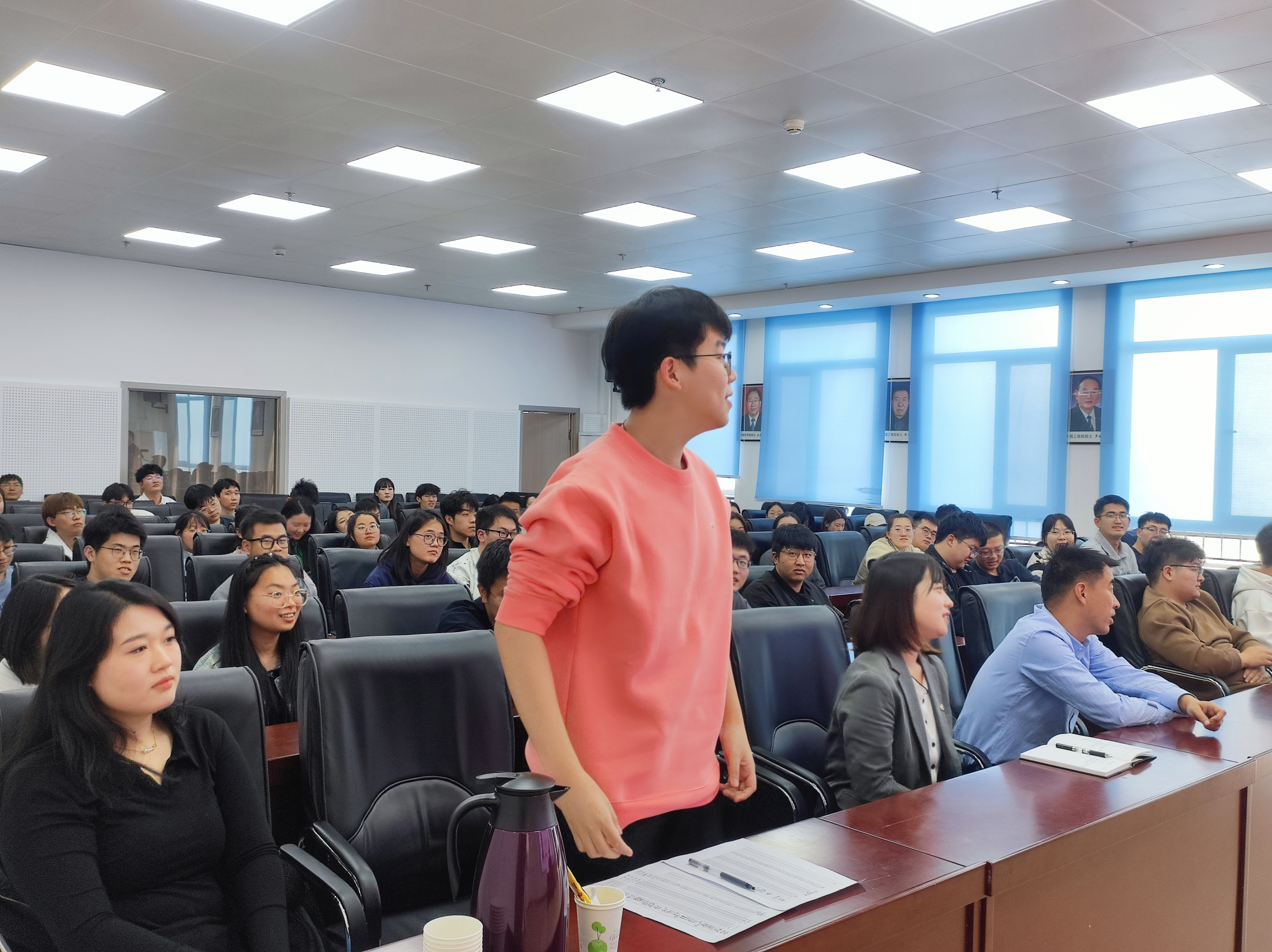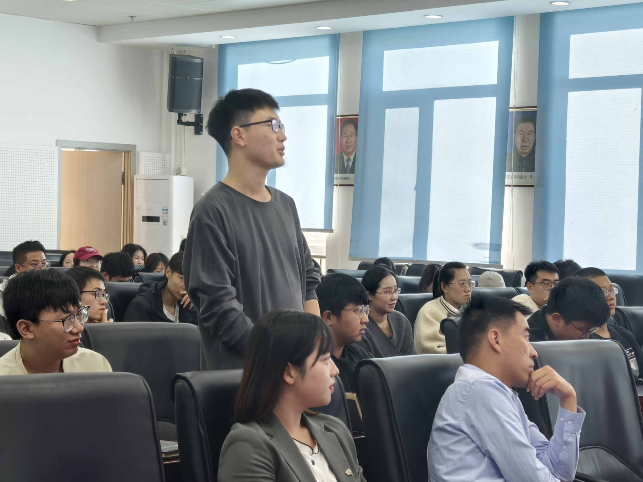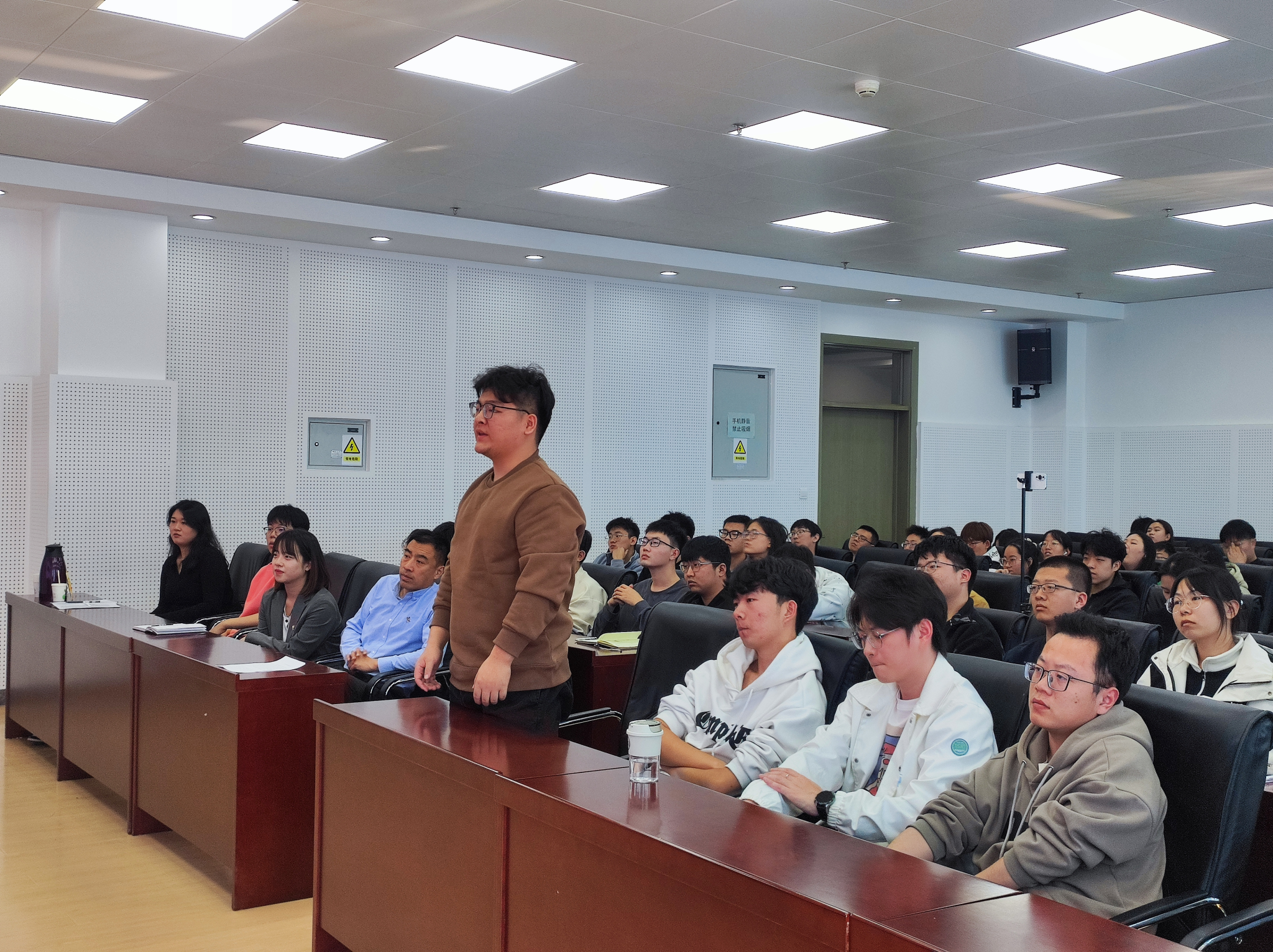 在互动环节中,同学们积极提出问题,贾富国教授耐心细致地为同学们答疑解惑,从科研到生活,从学术到理想,贾富国教授以自己为例,鼓励同学们潜心学习、打牢基础、厚积薄发,给在场的同学们提供了关于未来科研道路的新理解与新认识。