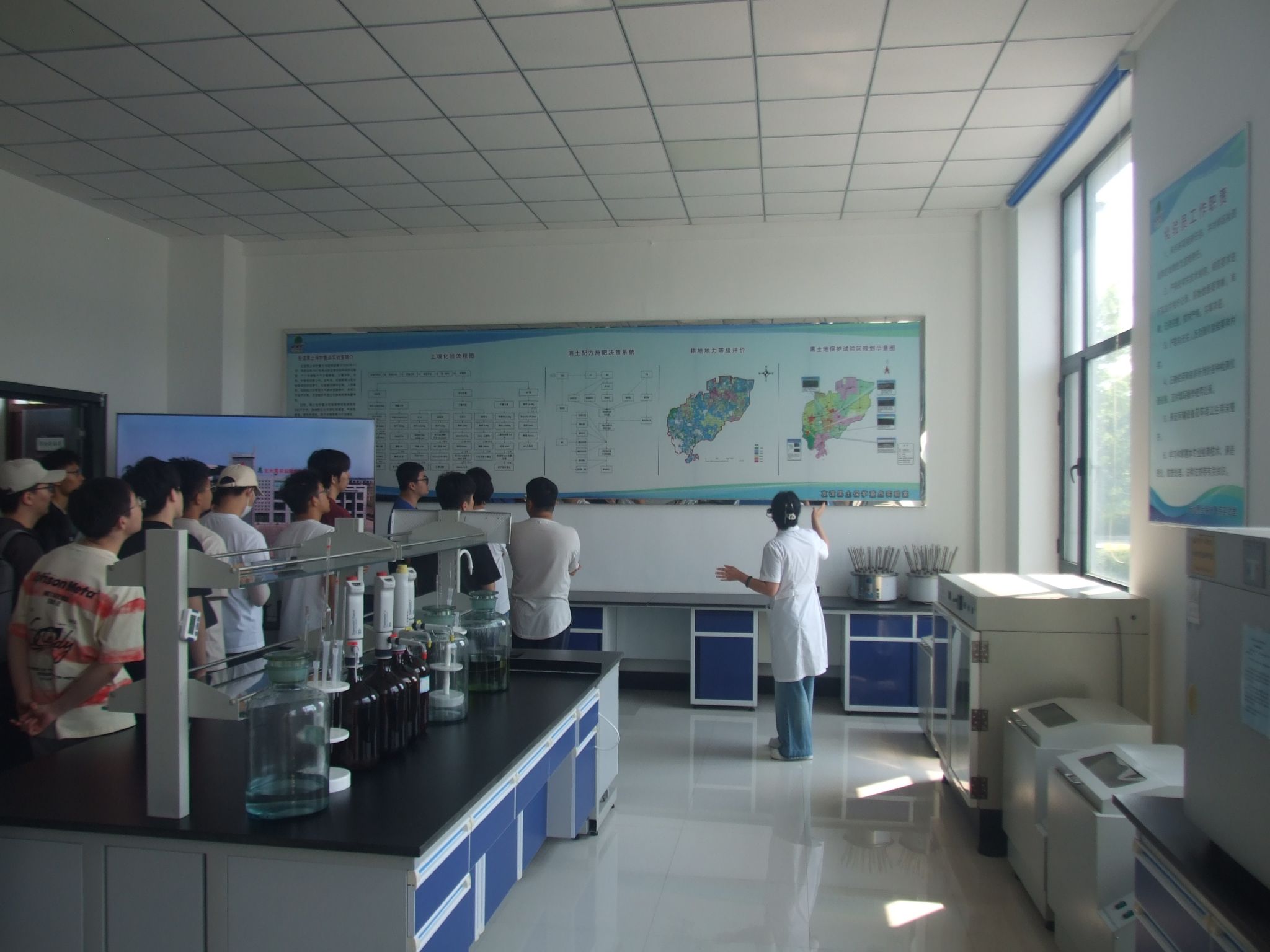 在黑土地科技实验室,了解了当地的黑土分布及黑土保护情况,见到了黑土地土壤检测的先进设备和技术;现场通过立体投影技术,让学生们沉浸式感受了友谊农场一年四季的农作,并以第一视角体验农业机械作业过程,使学生们对农业机械作业环境有了更深入的了解和认识。