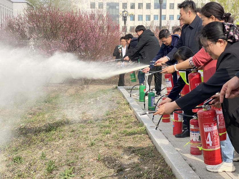 4月24日下午2:30时,随着消防警报的响起,消防应急疏散演练正式开始,疏散工作组负责人员迅速按照预定方案有序组织,完成了人员疏散,到操场预定安全区域,通讯组清点人数报秩序组组长,切实达到“紧张有序、镇定从容”目标。随后,保卫处消防科为全体师生讲解灭火器使用培训,介绍灭火器的基本原理和操作方法,师生与保卫处人员一起“零”距离操作使用消防器材,提升消防安全技能。