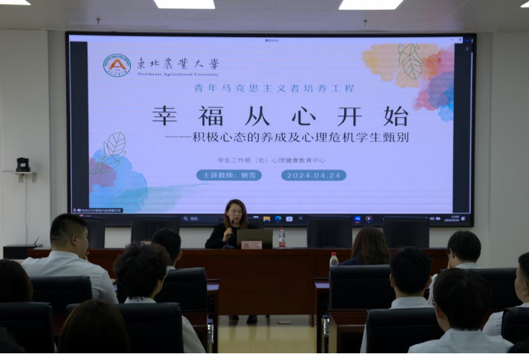 开班仪式后,校心理健康教育中心专职教师姚雪为学员们带来题为《幸福从心理开始——积极心态养成+心理危机识别》的精彩讲座,从心理学的角度分析积极心态对于个人成长和幸福的重要性及训练方法,通过生动的案例和互动式的教学方式,教授学员如何识别和处理心理危机的方法,助其在面对困难和挑战时保持积极心态,迎接生活挑战。鼓励学员利用所学知识与方法提升心理危机干预技能,成为心理危机学生的朋辈互助者,共同营造和谐、积极的校园环境。