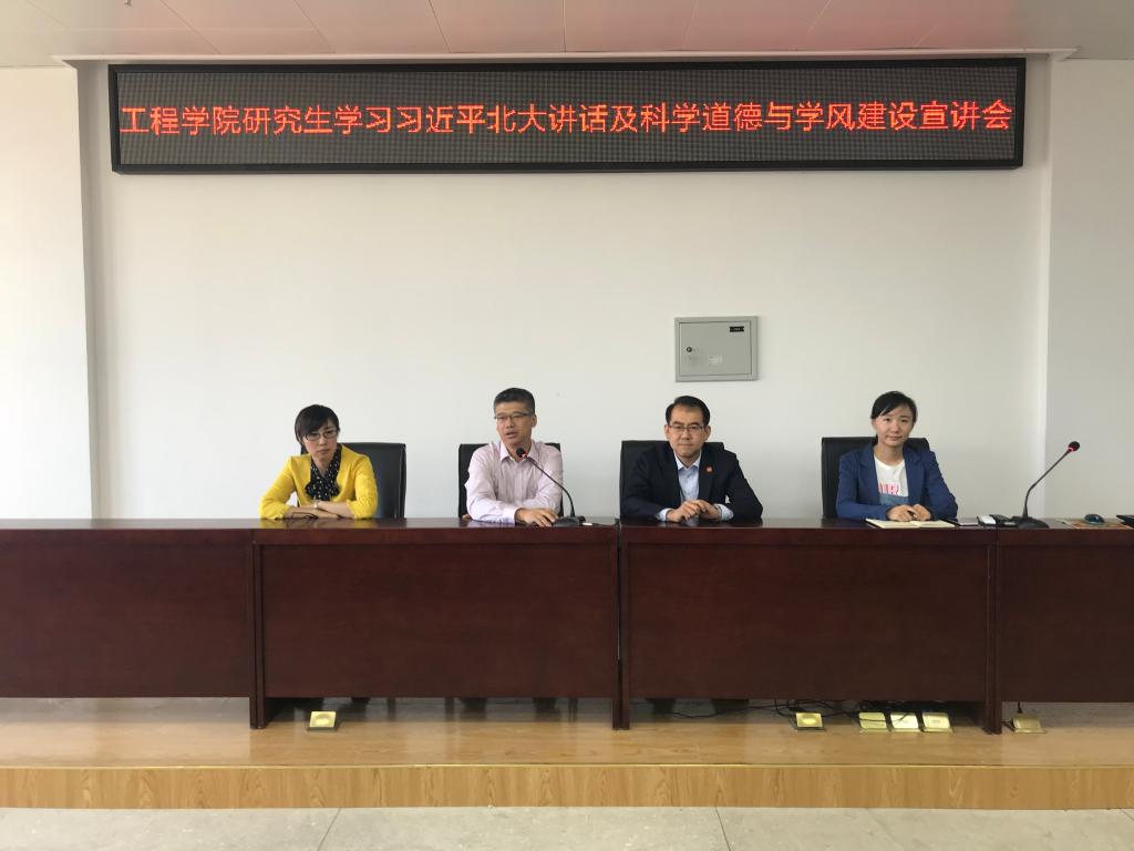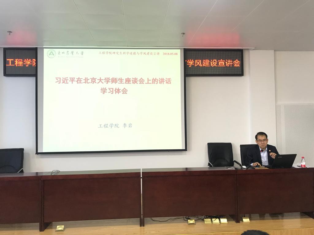 为深入学习贯彻习近平总书记重要讲话精神和增强科学道德与学风建设,Beat365中文官方网站于5月8日上午九时,在工程实训中心522会议室举办了以“学习习近平总书记在北京大学考察时重要讲话精神及科学道德与学风建设”为主题的宣讲会。Beat365中文官方网站党委副书记李晓书、副院长李岩、研究生教学秘书王敏,研究生辅导员张美玲,2017级博士研究生及全体硕士研究生参加会议,会议由李晓书主持。