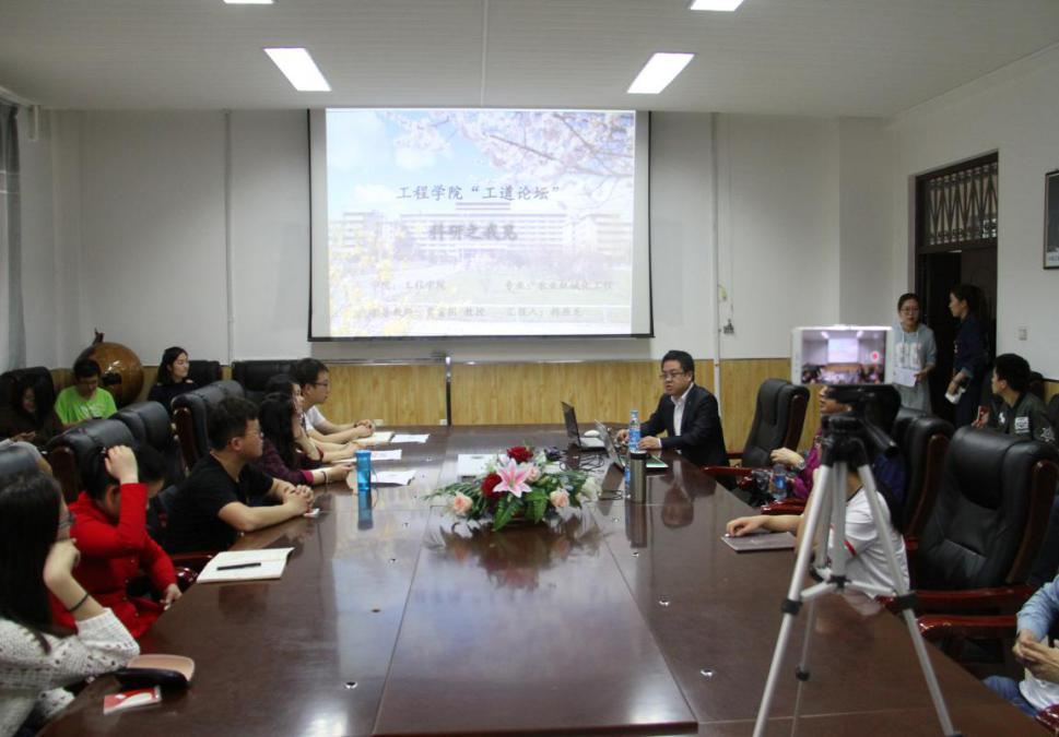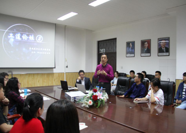 5月17日晚18时,Beat365中文官方网站第二期“工道论坛”于324会议室如期举行,此次论坛受邀的嘉宾为Beat365中文官方网站贾富国教授及农业机械化工程2014级博士生韩燕龙,副处级辅导员袁洪波,部分博士生、硕士生、本科生参加了此次论坛。