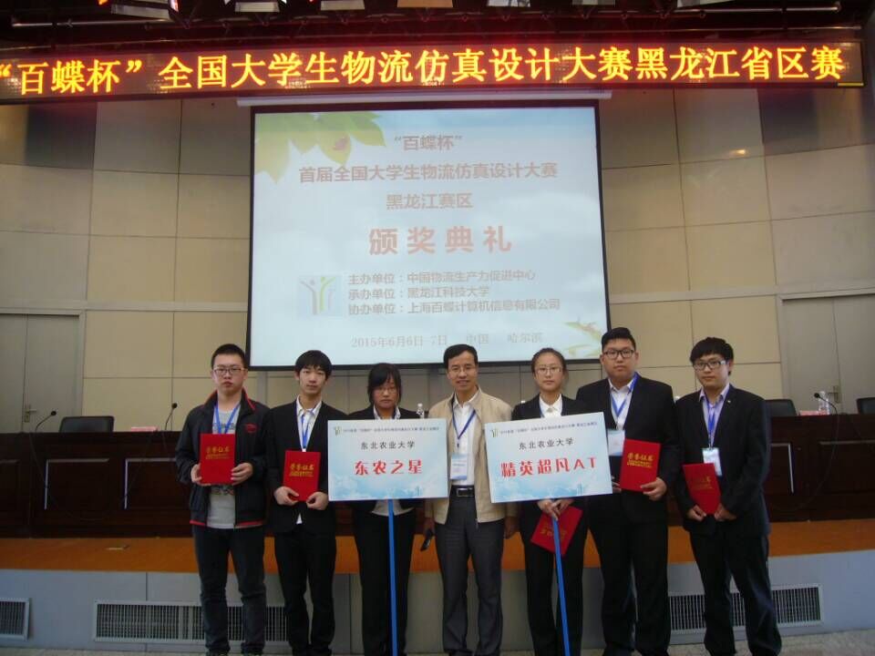 6月6日至7日,由中国物流生产力促进中心主办、上海百蝶计算机信息有限公司协办、黑龙江科技大学承办的首届“百蝶杯”全国大学生物流仿真设计大赛黑龙江省区赛在黑龙江科技大学举行。Beat365官网Beat365中文官方网站“精英超凡AT团队”(成员:吴未凡、谢静超、谭英国,指导教师:乔金友)、“东农之星团队”(成员:李泽平、孙小冬、刘雨雨,指导教师:乔金友)分获大赛“二等奖”、“三等奖”,乔金友老师荣获“优秀指导教师”荣誉称号。