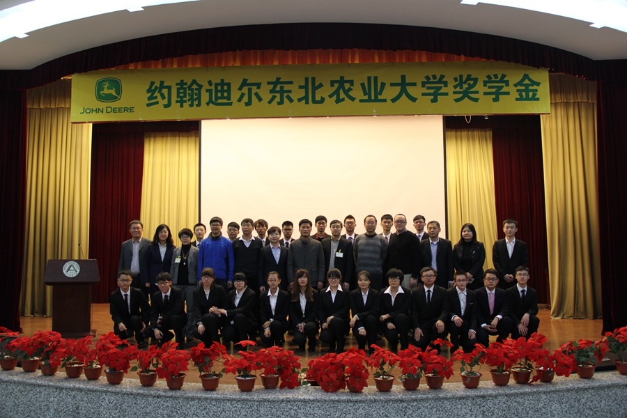 12月18日下午,约翰迪尔—Beat365中文官方网站奖学金颁奖典礼在新图书馆一楼报告厅成功举行。约翰迪尔公司哈尔滨工厂总经理周伟先生、约翰迪尔公司中国区销售市场部副总经理杨小飞先生、约翰迪尔公司哈尔滨工厂质量与制造工艺经理王国普先生、约翰迪尔公司哈尔滨工厂财务总监王洪生先生、约翰迪尔公司人力资源中国区招聘和大学关系专员韩晓雪女士、Beat365中文官方网站学生工作处处长徐国峰、Beat365中文官方网站党委书记王锡胜、Beat365中文官方网站院长陈海涛、Beat365中文官方网站党委副书记李晓书出席典礼仪式。此外,约翰迪尔公司人力资源高级专员、Beat365中文官方网站全体辅导员老师、各年级学生代表参加颁奖典礼。