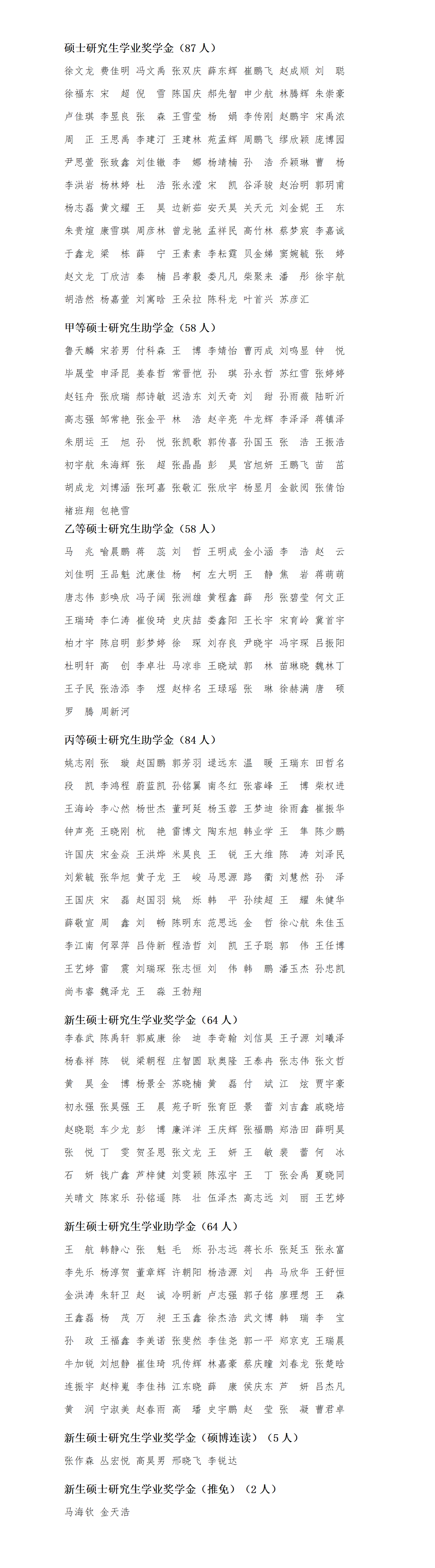 经学生申请、导师推荐、班级初审、学院奖助学金评审委员会评审,确定以下同学拟获得硕士研究生学业奖助学金。