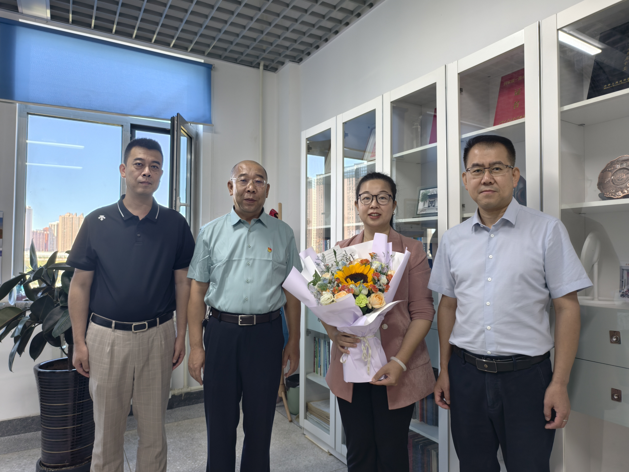 在第41个教师节来临之际,99日上午,工程学院党委书记黄步海,院长李岩,学院纪委书记、工会主席、正处级辅导员窦大昶一行来到教师办公室,向教师代表王金武教授、公维佳教授致以节日的诚挚问候,并送上鲜花以表祝福他们为学院发展作出的突出贡献表示衷心感谢。
