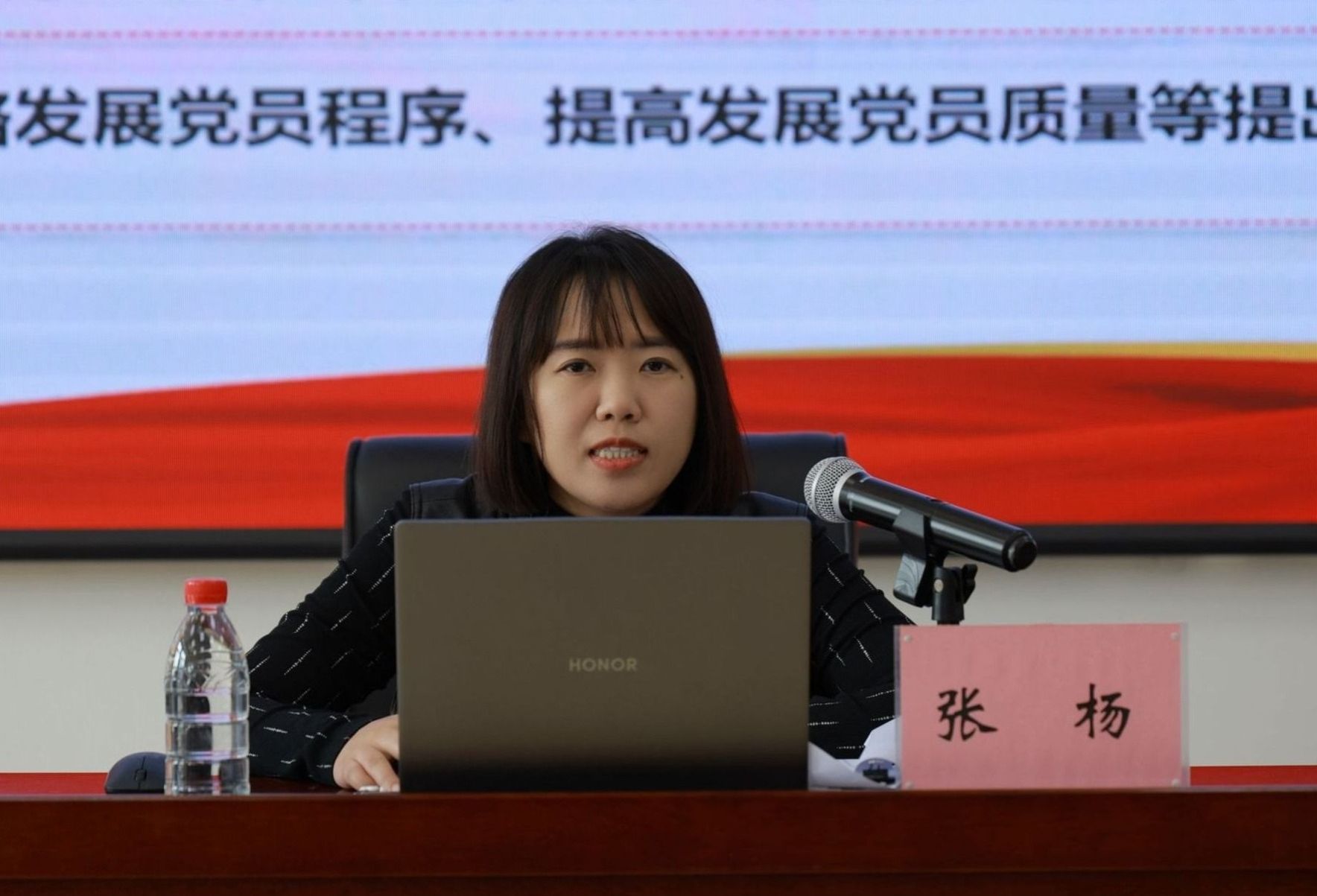 培训会上,张杨以规范党员发展流程,夯实党建工作基础为题,结合典型案例,深入剖析了党建工作中的重点难点问题,围绕发展党员工作全流程、发展党员常见问题、高校党支部纪实手册撰写规范以及材料书写易错点等方面进行了系统讲解,并通过现场答疑的方式与参会人员展开互动交流,进一步提升了培训的针对性和实效性。