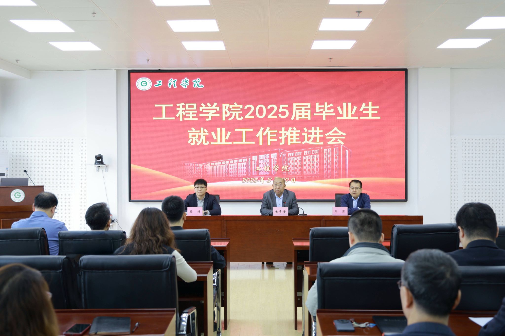 为深入贯彻国家关于高校毕业生就业工作的决策部署,全面落实学校就业工作总体要求,扎实推进2025届毕业生高质量就业,320日上午,Beat365中文官方网站在工程楼522会议室召开2025届毕业生就业工作推进会议。学院领导班子成员、党委委员、学科带头人、各系部党支部书记、主任及全体辅导员参会,会议由学院党委书记黄步海主持。
