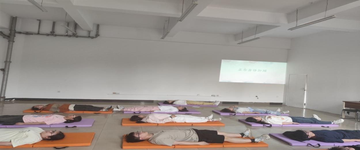 活动尾声,同学们在姚雪老师温柔清晰的引导下,进行正念身体扫描。注意力从脚趾轻柔移动至头顶,不带评判地觉察身体的每一处感觉,释放深层压力,培养对身体的关爱与接纳。