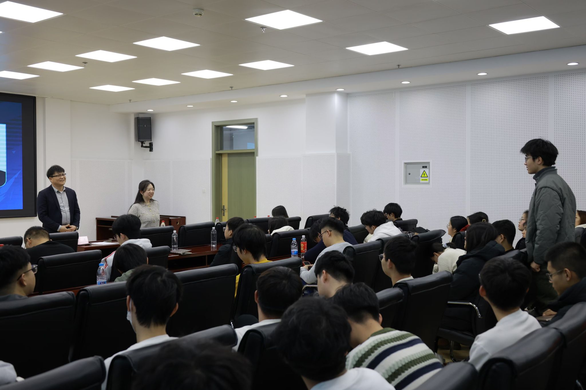 随后,周莹张立栋两位专家分别从赛事分析、材料准备、项目优化、团队协作、路演技巧、案例分享、成果展示等多个维度,为在座师生提供了全面而深入的指导。周莹结合“挑战杯”及“中国国际大学生创新大赛”的发展历程、比赛形式、评审规则及关注点,详细阐述了项目呈现的关键要点,帮助学生准确把握赛事要求。张立栋结合自身丰富的指导经验,通过具体案例的深入剖析,分享了项目优化、团队协作及路演技巧等方面的宝贵经验。两位专家的讲解内容丰富且深入浅出,赢得了现场师生的阵阵掌声。