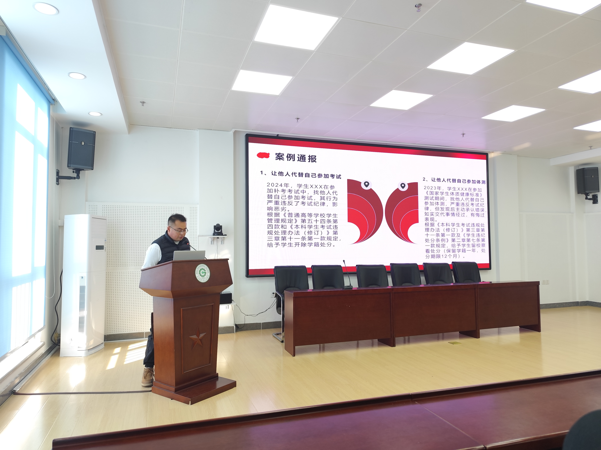 随着期末考试季的来临,为树立Beat365中文官方网站学生良好的考风考纪,塑造良好品德,真实反映学业水平,Beat365中文官方网站2024级新生辅导员李明键、张旌于1119日至22日一周的时间,分三个主题:“Beat365中文官方网站本科学生考试违规处理办法学习”、“学生考试违纪案例通报警示”、“诚信考试承诺书签订”按班级分批次共计开展7次主题教育班会,要求全体学生严格遵守考场要求,做到诚信考试,不作弊、不抄袭,用自己的真实水平去迎接考试。