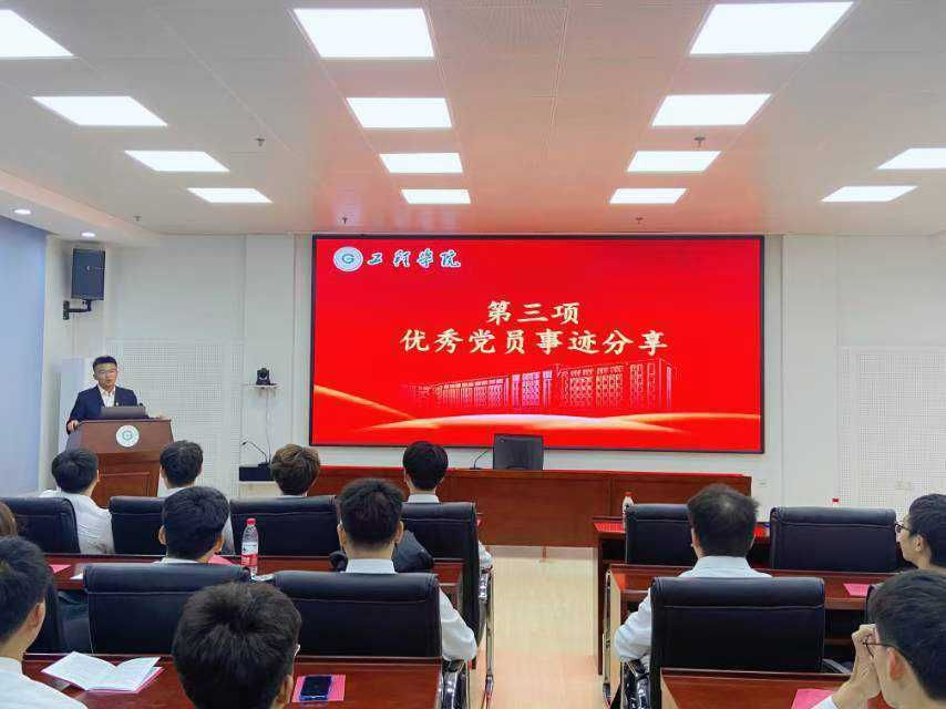 分享一次“心路历程”。本科生党员代表牛文波结合自身经历为新生分享个人入党经历、学习经验和保研过程,讲述自己在成长过程中对党的信仰的逐步认识与坚定追求以及如何向党组织靠拢的心路历程。同时,介绍保研不仅仅是成绩的比拼,还涉及到科研能力的展示、竞赛获奖经历的积累以及课外活动中领导力和团队合作能力的体现,并表示作为一名党员,不仅要在思想上高度认同党的宗旨,还要在行动上始终如一,坚持做一名“信念坚定、对党忠诚、勇于担当”的中国共产党员。
