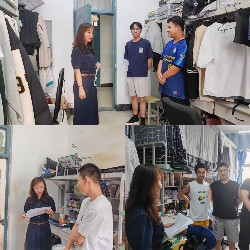 宿舍里,老师们重点检查了寝室用电安全和寝室卫生,排查是否存在大功率用电器和使用明火等现象,并与同学们进行沟通和交流,了解学生每天回寝时间、心理健康和吃住情况等,提醒身体异常和生病学生立即报备,及时提供帮助。同时提醒同学们做好暴雨防灾避险安全,如有学生本人或家人受强风、暴雨、洪涝等灾害影响,出现如洪水围困、房屋倒塌、失踪失联等重大意外情况,务必第一时间上报,特殊问题及时处理,确保留校学生的安全稳定。