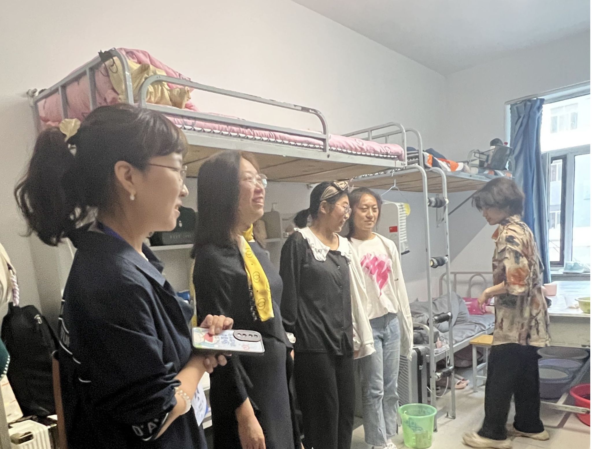 副院长王金峰和研究生辅导员孟繁美深入学生宿舍走访,慰问了已经报到入住的研究生,了解学生目前的适应情况,结合同学们的反馈,和同学们深入交谈,叮嘱新生注意宿舍用水、水电安全,尽快调整状态,迎接新的挑战。