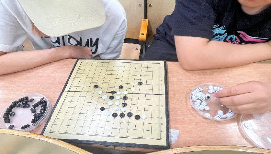 .正式比赛:比赛开始了,同学们严阵以待,身着校服,精神饱满。场馆内数张桌子上摆放着整齐的棋盘,每位参赛者坐在桌子两侧的椅子上,手持棋子,紧盯着自己面前的棋盘。在场馆的一角,裁判工作人员们严格监督着比赛的进程,保证比赛的公平公正。