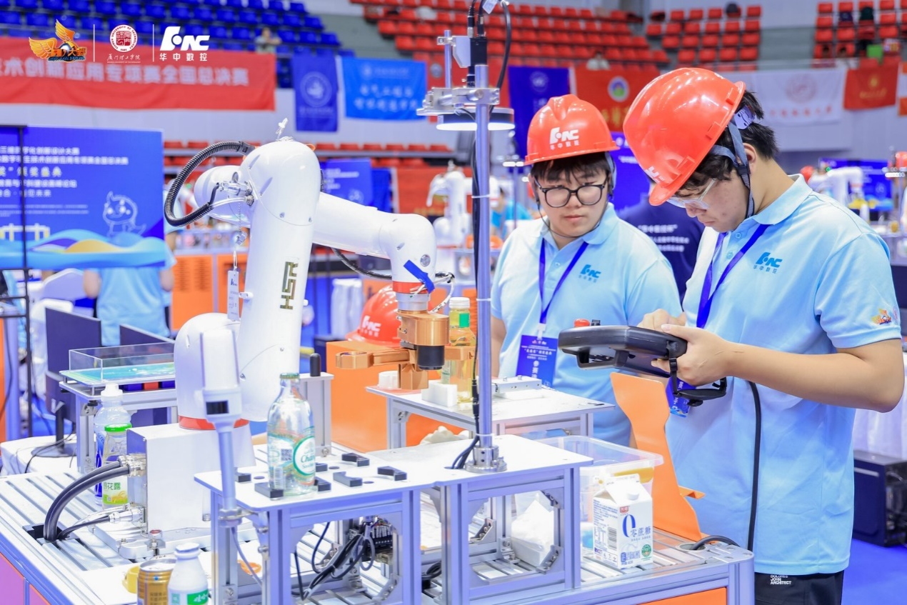 全国3D大赛秉承“以赛促学,以赛促教,以赛促改”的理念,为全国规模最大、规格最高、水平最强、影响最广的公益品牌赛事与“互联网+创新”行业盛会,被业界誉为“创客嘉年华”“3D奥林匹克”“创新设计奥斯卡”。其中,“华中数控杯”专项赛围绕“数字设计与智能制造”核心,引入工业协作机器人和数字孪生技术创新应用平台,考察学生在机器人夹具设计、视觉系统安装调试、数字孪生仿真联动、液体瓶罐搬运开盖分装等任务中的综合应用能力。这种赛项采用真实工业装备和模拟真实环境赛道,真正检验了选手们面对复杂工程问题时的系统设计、调试与集成能力。